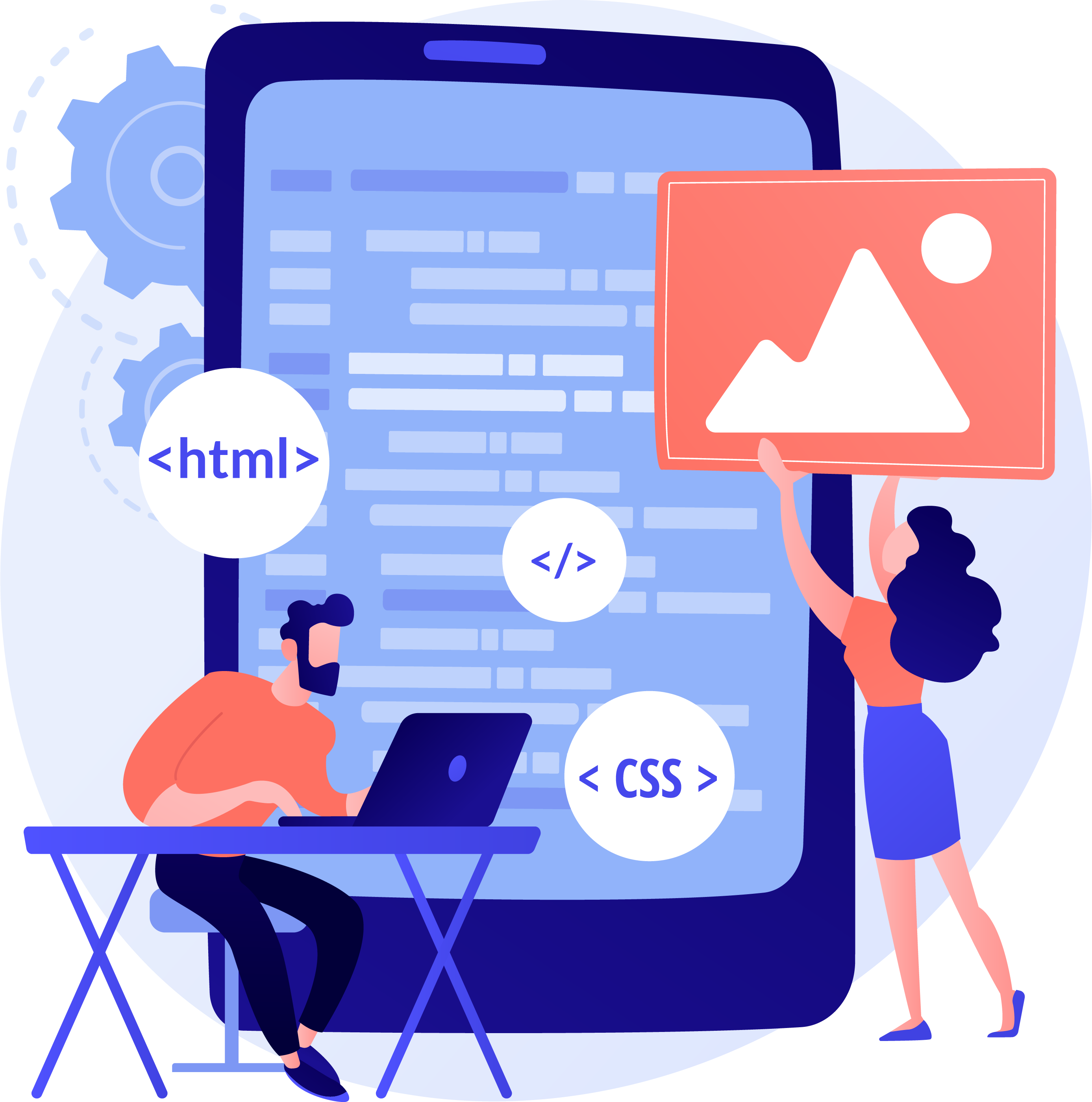 La première phase comprend la définition des objectifs, la compréhension des besoins des utilisateurs. Une recherche de marché analyse la concurrence et les attentes des utilisateurs, accompagnée de l'élaboration d'un cahier des charges détaillant les fonctionnalités, le design, les exigences techniques, et les cas d'utilisation. La conception de l'Expérience Utilisateur (UX) planifie la structure avec des wireframes ou maquettes pour optimiser l'expérience. La conception de l'Interface Utilisateur (UI) définit l'aspect visuel, incluant la palette de couleurs, les icônes, les polices, et les éléments graphiques. Enfin, la phase de prototypage développe un prototype interactif pour tester la navigation et la convivialité.